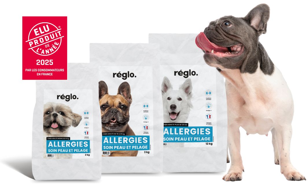 Dès que la santé de la peau d’un chien s’améliore après avoir commencé les croquettes Réglo, cela confirme le diagnostic d’allergies alimentaires. Les croquettes étant saines et riches en protéines animales, elles sont une alimentation adaptée au bien-être du chien toute sa vie. Consultez votre vétérinaire pour être guidé sur des besoins spécifiques de votre chien.