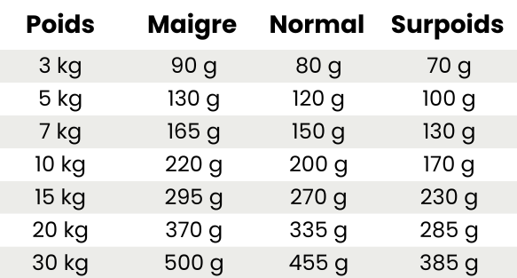 Nous recommandons de diviser la ration journalière de votre chien en deux repas : 1 le matin et 1 le soir.