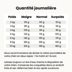 Nous recommandons de diviser la ration journalière de votre chien en deux repas : 1 le matin et 1 le soir.
